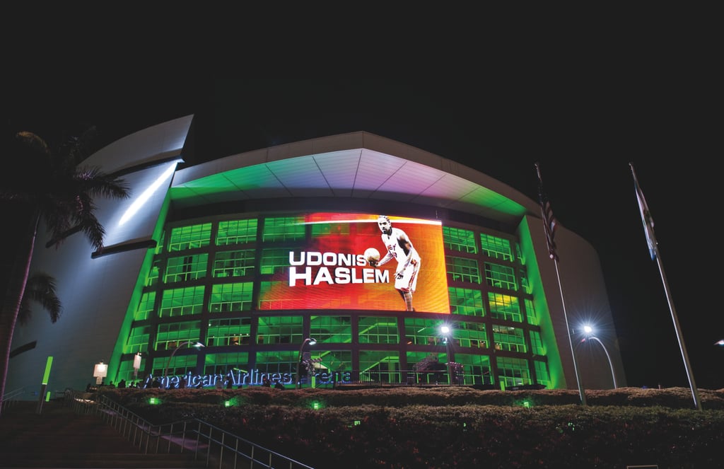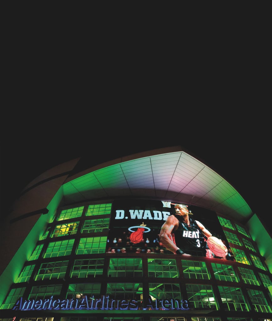 American Airlines Arena: Heimat des Basketball Teams Miami Heat und der ersten großen Mediamesh-Installation in den Vereinigten Staaten von Amerika. Das 312 m² große Mediamesh besteht aus acht einzelnen Paneelen und hat insgesamt 147.840 Pixel bei einer Pixelteilung von 5 cm vertikal und 4,25 cm horizontal. Dank der Transparenz des Edelstahlgewebes können die Besucher der Arena ungehindert vom Inneren durch die Fensterfront hinausschauen, während das Tageslicht das Innere der Arena erreicht. Ob Werbung, Live Streams oder Eventtermine, jegliche Informationen können über das transparente Display kommuniziert werden.