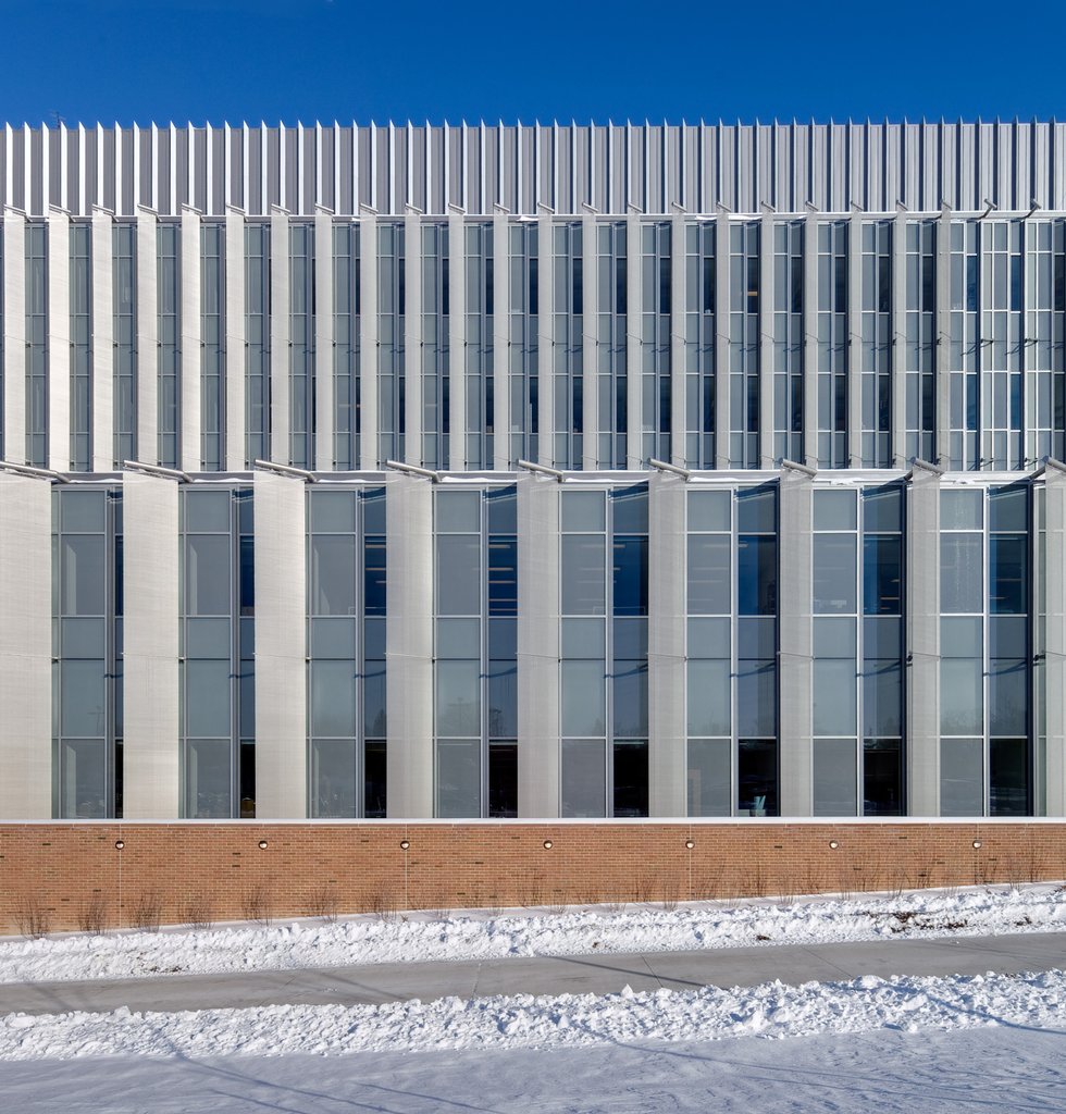 Transparenter Sonnenschutz aus Metallgewebe für den Mark Jefferson Science Komplex in Michigan, USA.