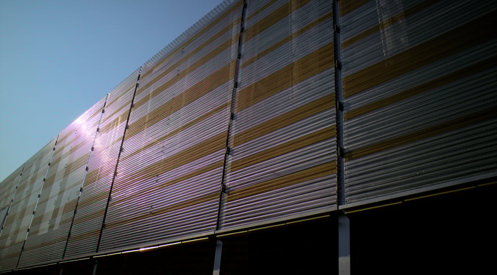 20. Januar 2023Vorgelagerte Fassade aus transparentem Sonder-Spiralgewebe