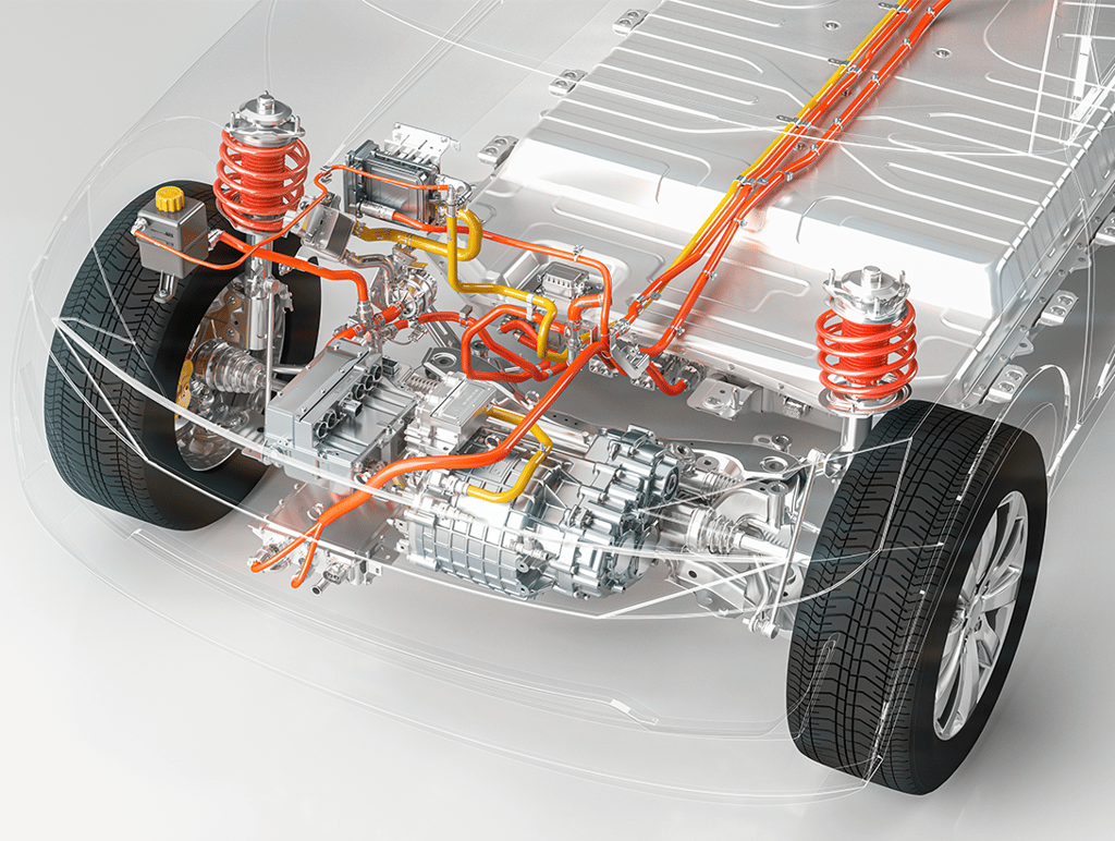 Aus drei mach eins – so lässt sich das Prinzip der E-Achse (auch eAchse oder E-Achsen-System) erklären. Denn wo Elektromotoren lange Zeit auf drei Bauteile angewiesen waren, vereint die E-Achse heute Elektromotor, Getriebe und Leistungselektronik in einem kompakten Element. Das spart nicht nur viel Platz, sondern senkt auch das Gewicht und steigert die Effizienz von batterieelektrischen Fahrzeugen.