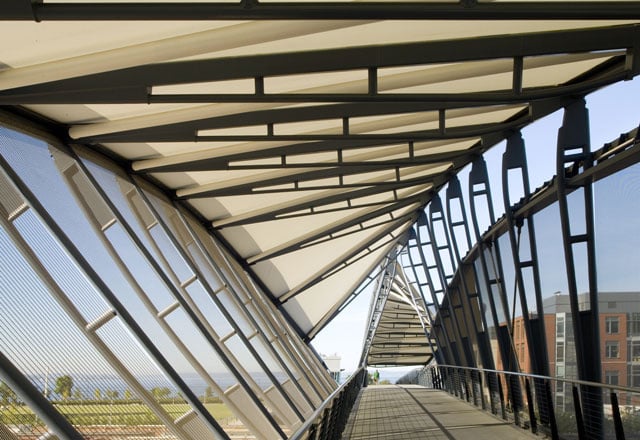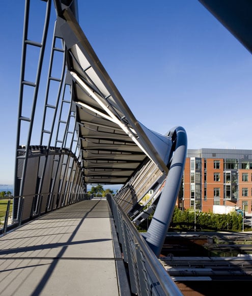 The bridge including cladding was designed by Johnson Architecture from Seattle and is an exciting new architectural highlight of the city on the west coast of the United States.