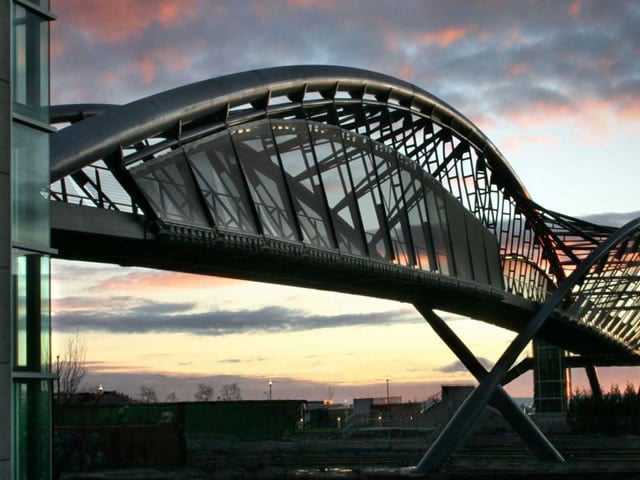Stainless steel metal mesh from GKD clads a spectacular, 120 m long bridge with an appearance reminiscent of a giant, spiral-shaped DNA helix.
