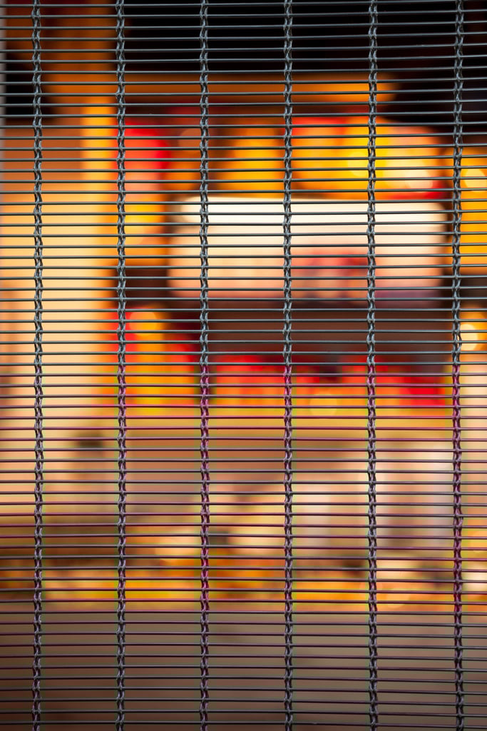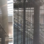 Ten fabric panels also partially clad the exterior façade. The durable fabric is used here both as a design element with a wide range of effects generated by its reflective metallic structure, and as a transparent visual filter and bird protection in front of the window openings. In addition, the open structure of the stainless steel fabric also guarantees optimal ventilation of the market hall.