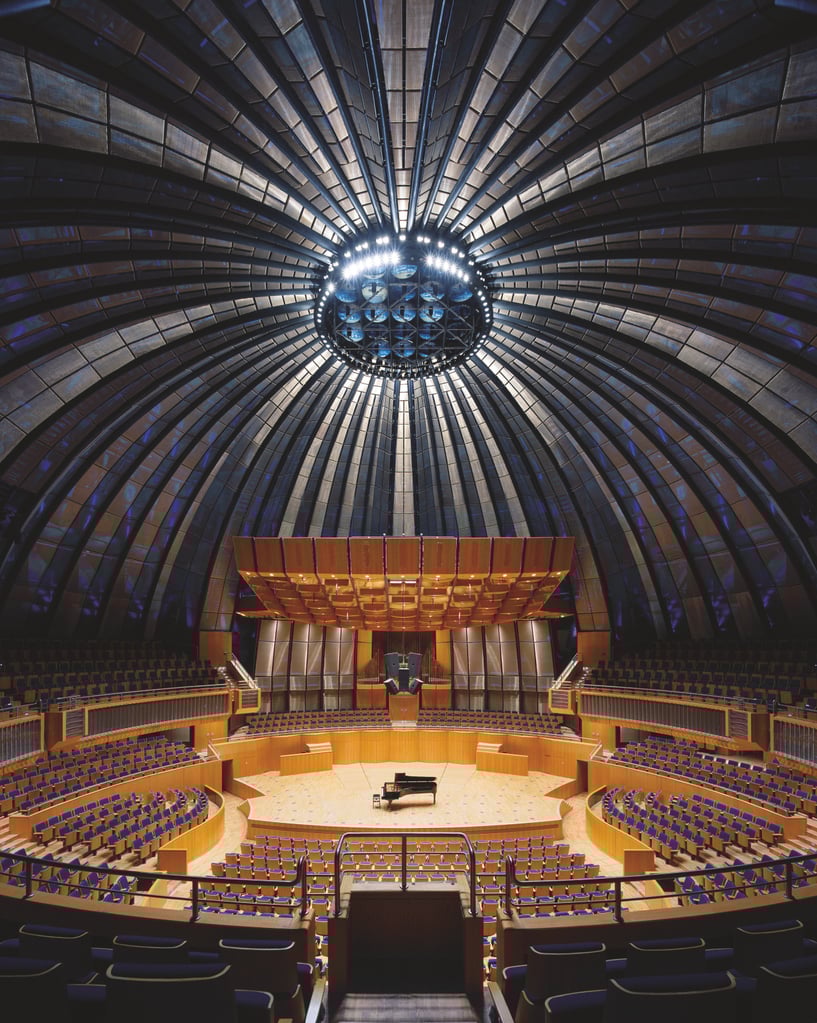 The Silentmesh acoustic ceiling system opens up versatile design options at the Tonhalle Düsseldorf concert hall and shines through its acoustic properties.