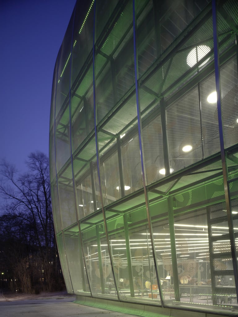 Omega architectural metal fabric graces the House of Music and Music Drama and ensures both solar protection and visual screening.