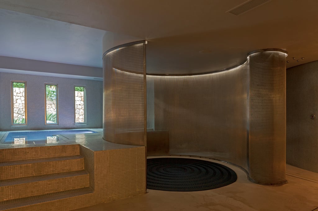 To produce the elegant room dividers, the renowned Spanish interior designer Sara Forch selected Lamelle architectural fabric from GKD for its high-quality appearance, sustainable stainless steel material, and because the fabric is resistant to the corrosive influences within the spa area.