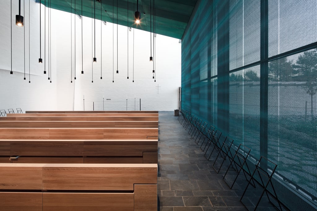 The Vantaa community, which is also home to the airport of the same name in the Finnish capital of Helsinki, commissioned the architects at Avanto to design a new chapel and funeral hall. Among other things, three grieving rooms of different sizes were created. A special version of Baltic architectural mesh was produced in bronze specifically for the ceilings and walls, as well as the interior and exterior façade cladding.