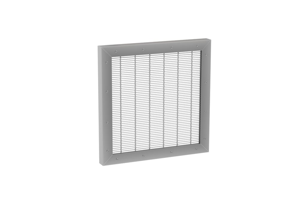 El tejido se coloca por dentro de un marco, compuesto por un ángulo de acero inoxidable, y a continuación se aprieta y se atornilla con un elemento plano de acero inoxidable de cuatro lados. Este tipo de fijación se utiliza preferentemente en aplicaciones de balaustradas. Para otras aplicaciones con tejidos PC, GKD ofrece posibilidades individuales de fijación a petición del cliente.
