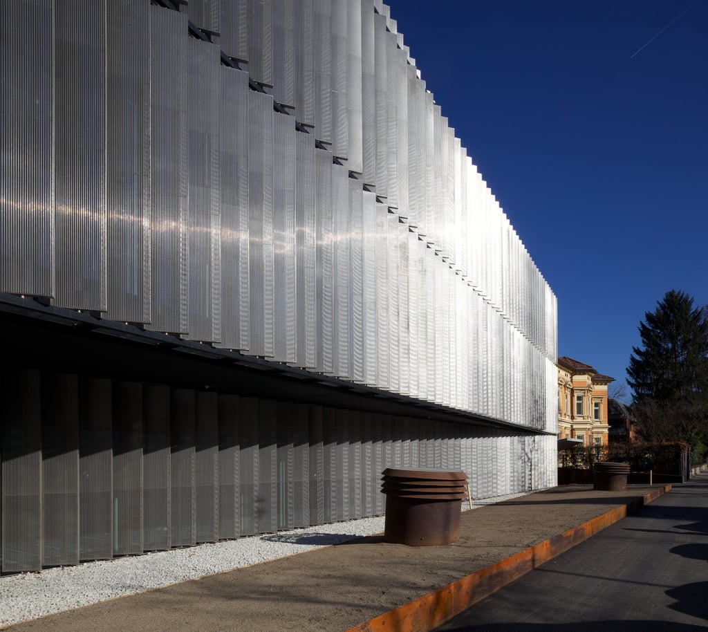 Un efecto exterior representativo de la arquitectura que se integrara a la imagen de la ciudad de Innsbruck, así como estándares modernos como la eficiencia energética y la sustentabilidad, fueron la idea principal del arquitecto Peter Lorenz en la planificación del nuevo edificio de oficinas.La fachada de protección solar de tejido de alambre de GKD une todas las características deseadas.El revestimiento de la fachada se realizó con láminas de protección solar verticales de acero inoxidable de GKD.Cada una de las 680 láminas (superficie total de unos 1.800 m²) ha sido fabricada como un tejido especial con tres grados de densidad en cada pieza. Para combinar una protección solar eficiente con la mayor transparencia de tejido posible, las láminas de protección solar son cada vez más densas a medida que se sube. Los elementos de tejido móviles, de aproximadamente entre 2,80 y 3,80 metros de altura, están soldados al marco y se pueden manejar eléctricamente.