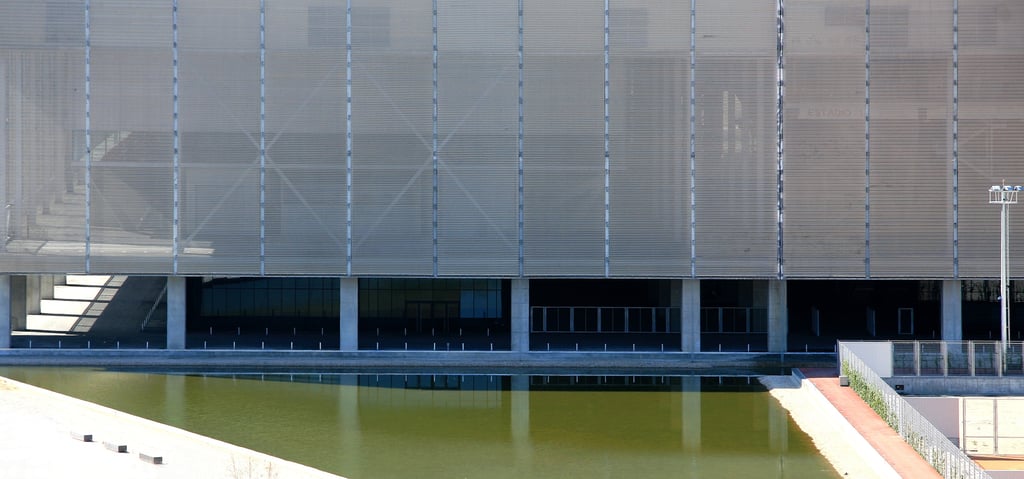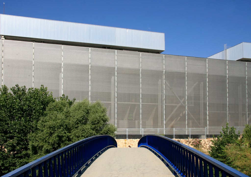 El Centro Deportivo Multifuncional del Manzanares, diseñado por Dominique Perrault, se recubrió con 23.000 qm de tejido de acero inoxidable de GKD.La fachada de tejido le quita la apariencia dominante a la gigantesca construcción de 160.000 qm ubicado en medio de un parque, y permite que el complejo de edificios cree una relación simbiótica con la naturaleza cercana a él.