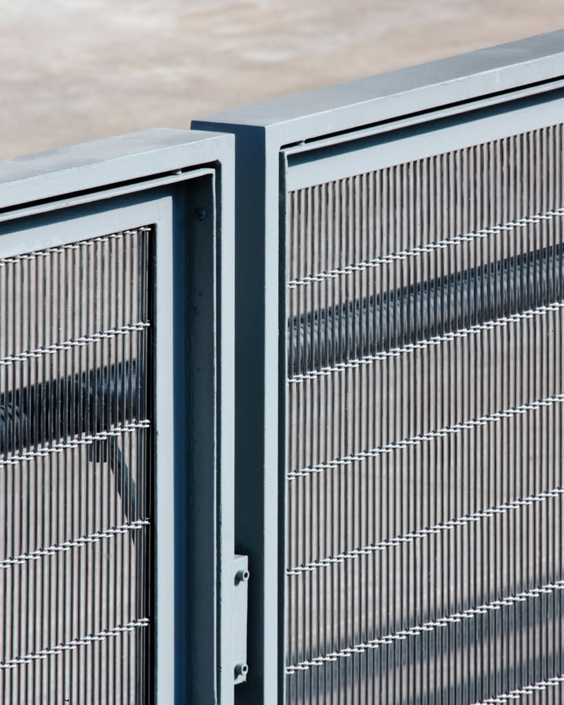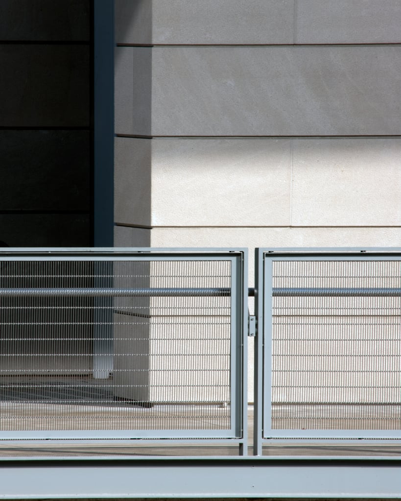20. enero 2023Balaustrada de malla metálica en el Nichols Bridgeway