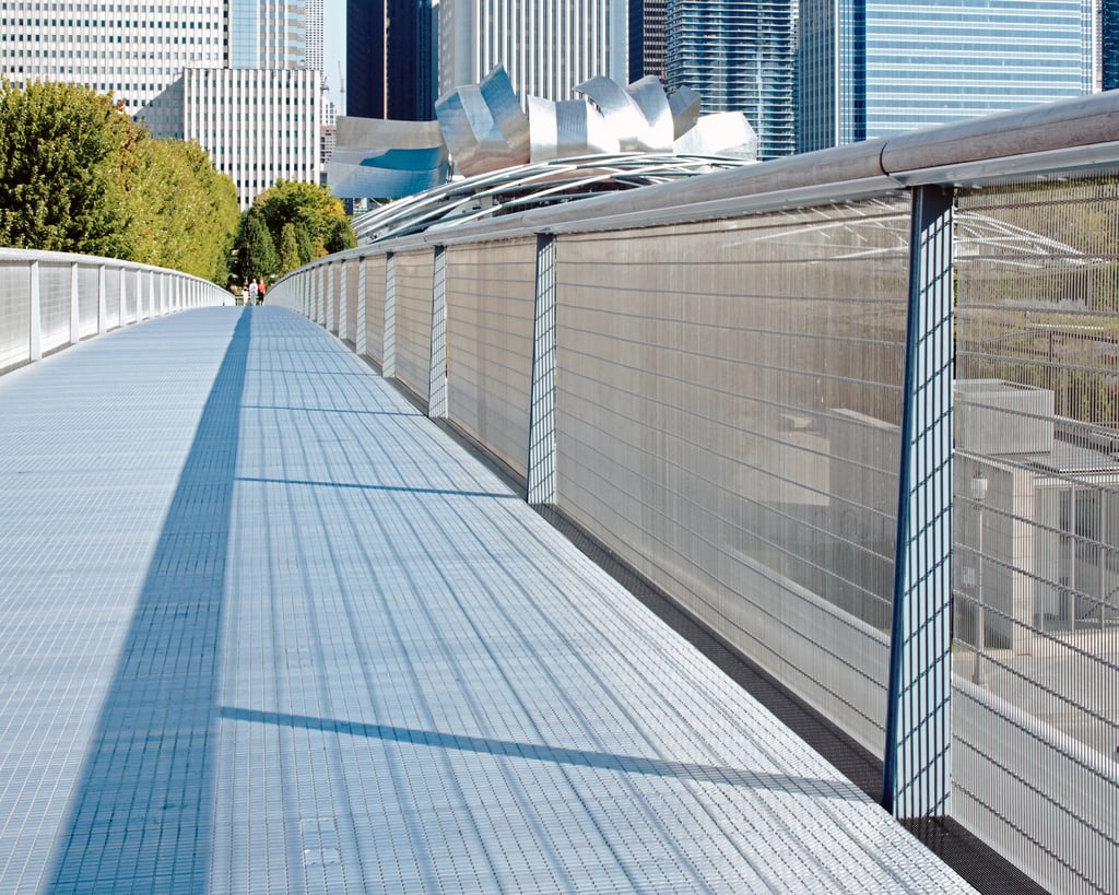 La «Modern Wing» del Chicago Art Institute fue diseñada por el famoso estudio de arquitectura Renzo Piano y fue inaugurada en el año 2009.Se encuentra justo enfrente del Parque del Milenio.Por el puente Nichols Bridgeway los visitantes acceden al museo. La balaustrada del puente está formada por 112 marcos que en su interior contienen el tejido de acero inoxidable PC-Tigris. Con una anchura típica de 3,9 metros y una altura de 1,4, la malla metálica protege a los peatones. La vista del skyline de Chicago es apreciable sin obstáculos gracias a la transparencia del tejido.