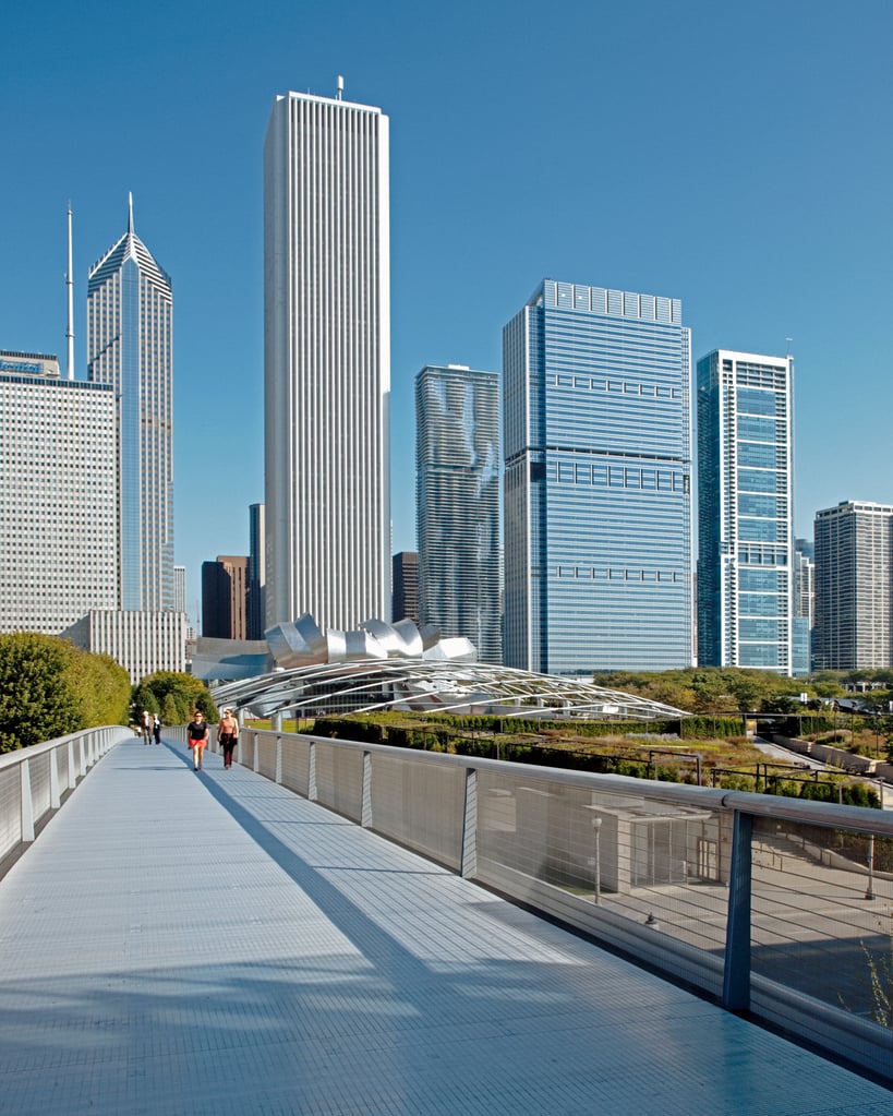 La balaustrada de acero inoxidable PC-Tigris protege a los visitantes del Chicago Art Institute sin tapar las vistas del skyline de la ciudad.
