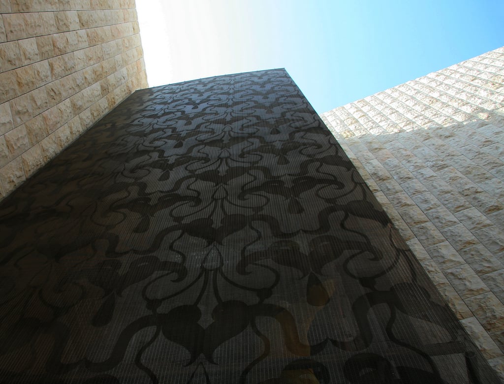 El material elegido fue el tejido de acero inoxidable modelo Omega 1520, como componente esencial de una ingeniosa combinación entre fines de ahorro y producción de energía. Además, el tejido obtuvo un tratamiento superficial especial: con la técnica de aguafuerte fue decorado con ornamentos árabes que se extienden por todas las fachadas de tejido.280 paneles de tejido, hasta 13,5 metros de alto y hasta cuatro metros de ancho en una superficie de 7.000 metros cuadrados: protección solar selectiva, transmisión uniforme de la luz, vista sin obstáculos hacia afuera, vida útil prácticamente ilimitada del tejido de acero inoxidable.