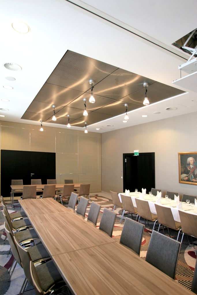 En el diseño de los techos del hotel Drei Mohren se emplearon elementos con aislamiento acústico.