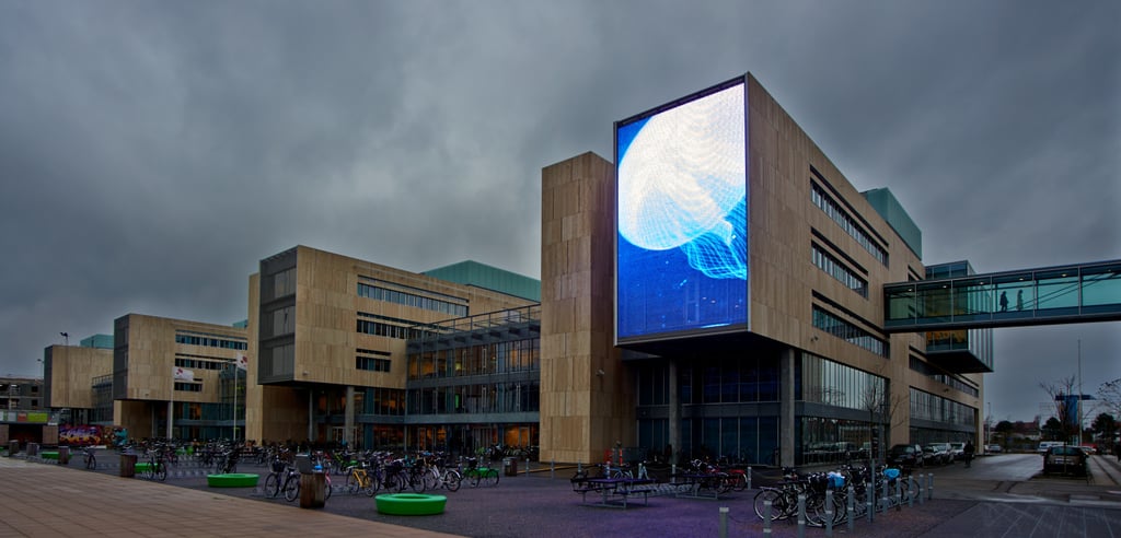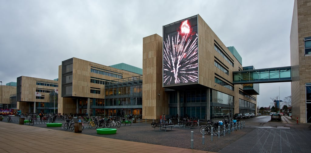 La primera fachada exterior para el sistema Mediamesh SMD se encuentra desde diciembre del 2014 en la Universidad de Copenhague. Los arquitectos Aktimea equiparon el lado frontal de una parte del edificio del terreno universitario con una fachada mediática transparente hecha de tejidos de acero inoxidable. La estructura tejida de la pantalla permite que estudiantes y profesores puedan disfrutar de una vista despejada con una gran e inalterada entrada de la luz del día. El contenido de la fachada mediática y las representaciones fotorealistas con imágenes de la naturaleza o de la ciudad, son creados por un artista externo.