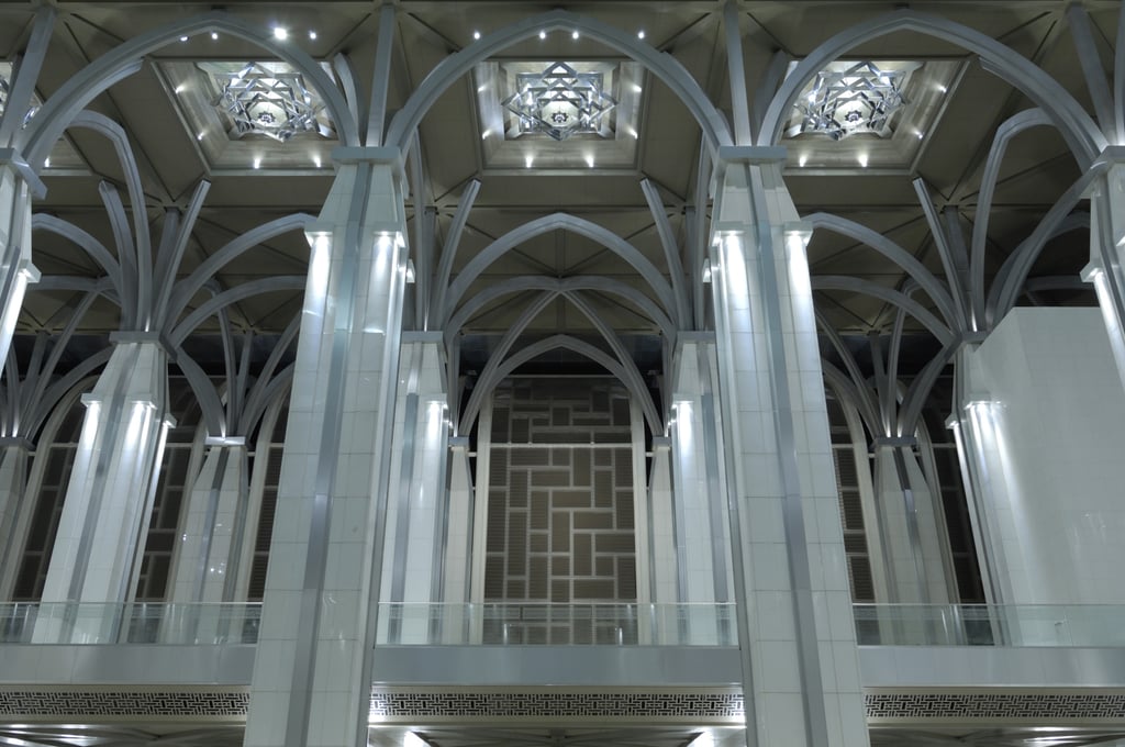 Para poder hacer realidad el plan del arquitecto Nik Arshad Nik Mohammed de equipar el oratorio principal con climatización natural, fueron decisivas sobre todo las propiedades conductoras del tejido de acero inoxidable. De este modo, la cubierta tejida de la fachada protege de las corrientes de aire, pero deja pasar la dosis adecuada de corriente de aire para refrigeración.