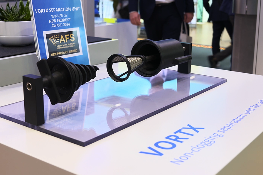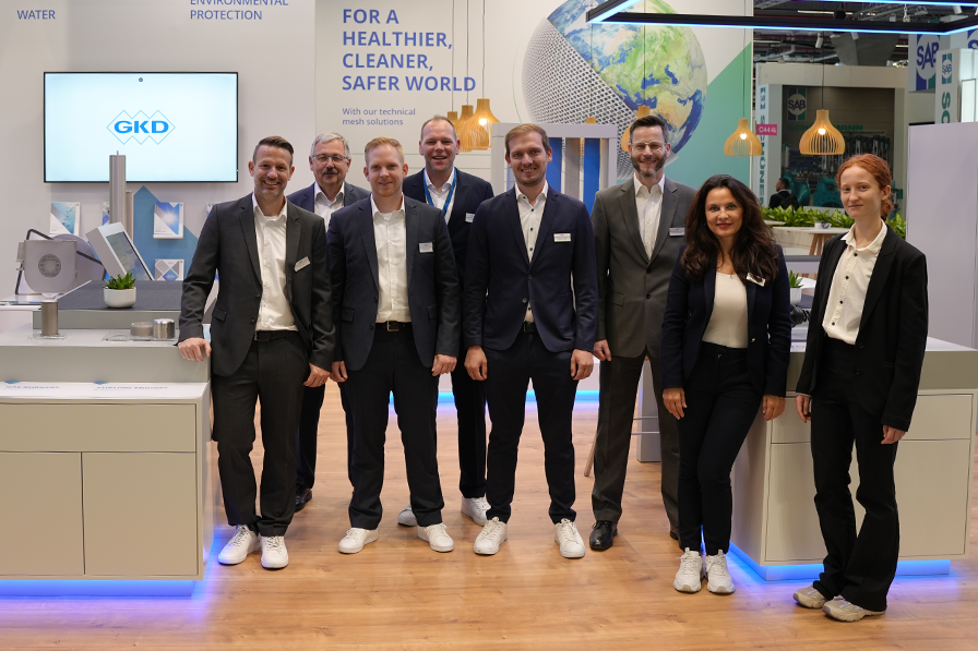 GKD también presentó soluciones innovadoras en el ámbito de la gestión del agua. La unidad de separación VORTEX, que separa eficazmente las fibras microplásticas, y CAPTURION, un nuevo sistema de filtrado para los sumideros de calles y carreteras que filtra la abrasión de los neumáticos. Es decir, los microplásticos de las aguas pluviales de escorrentía. Ambas innovaciones calificadas por el público experto como soluciones para el futuro con un enorme potencial.