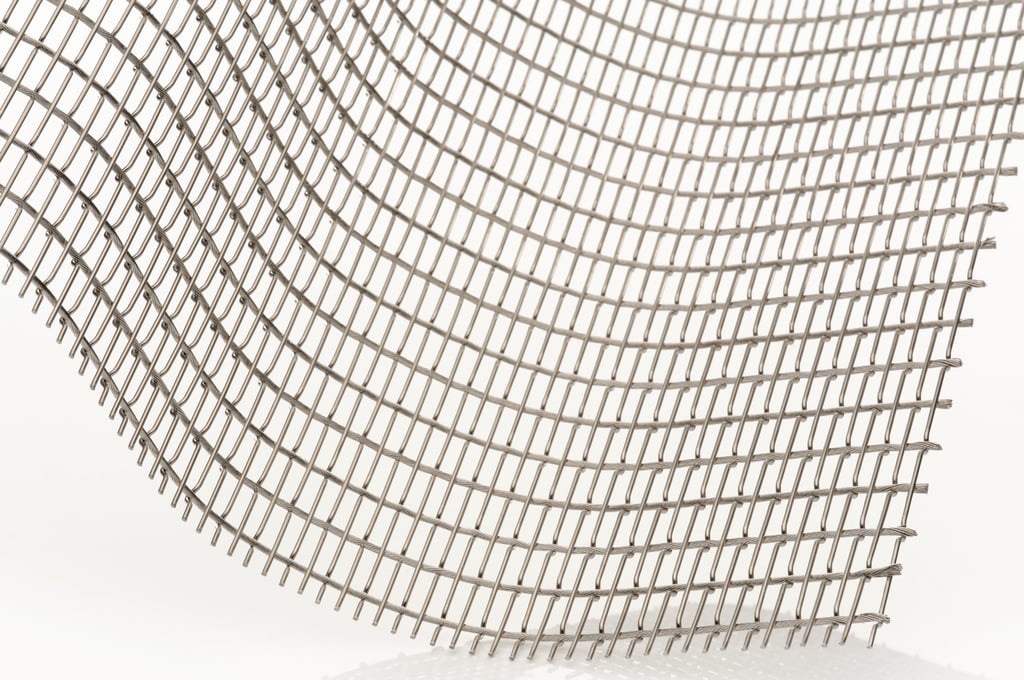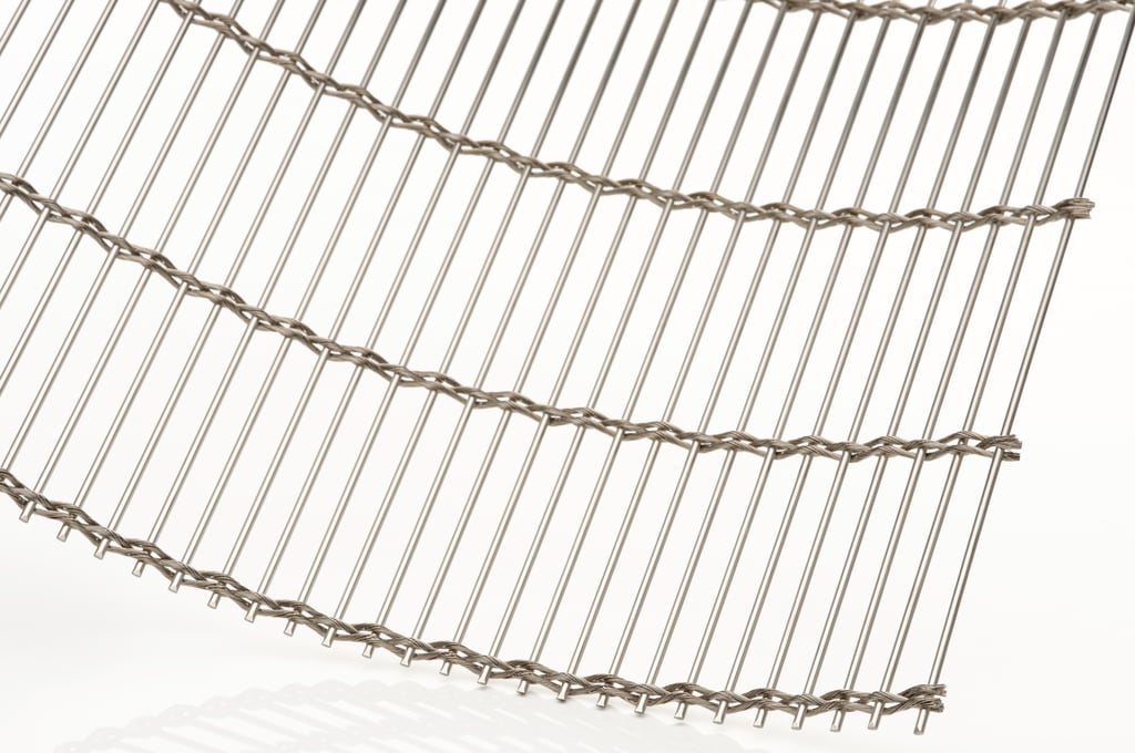 Dans le cas du système de fixation barre ronde incorporée au tissage + chapes filetées, des fils de trame sont retirés de la toile métallique et remplacés par une barre ronde répartissant la charge. La toile métallique est tendue sur une sous-structure à l’aide de chapes filetées. Ce système de fixation convient dans le cas d’une maille câblée à câbles groupés.