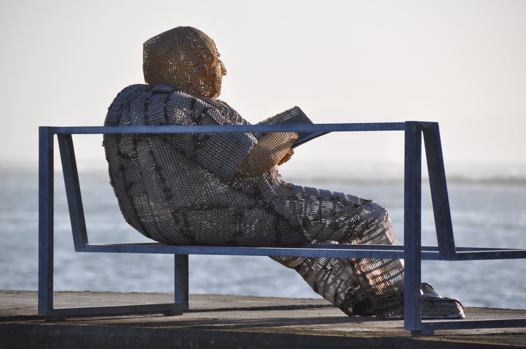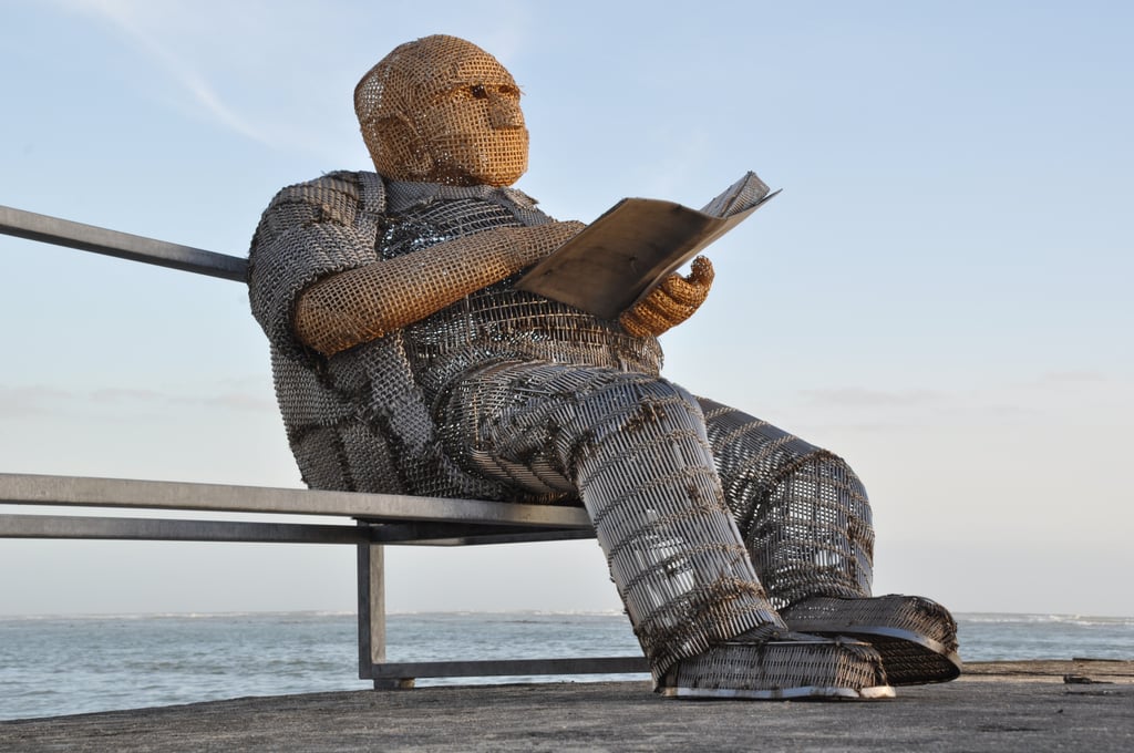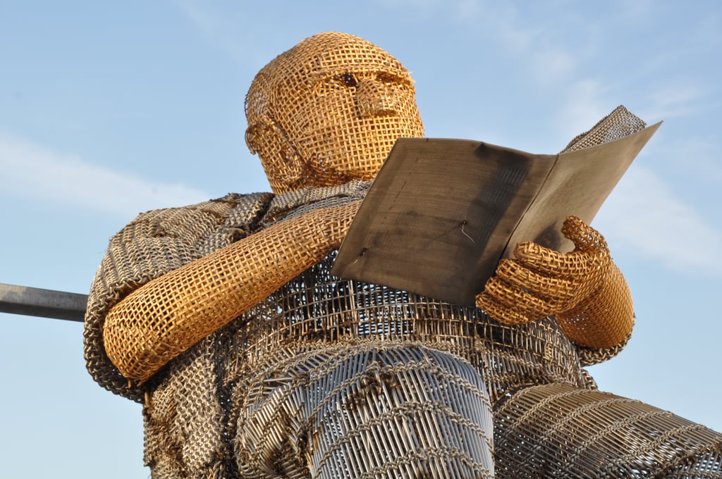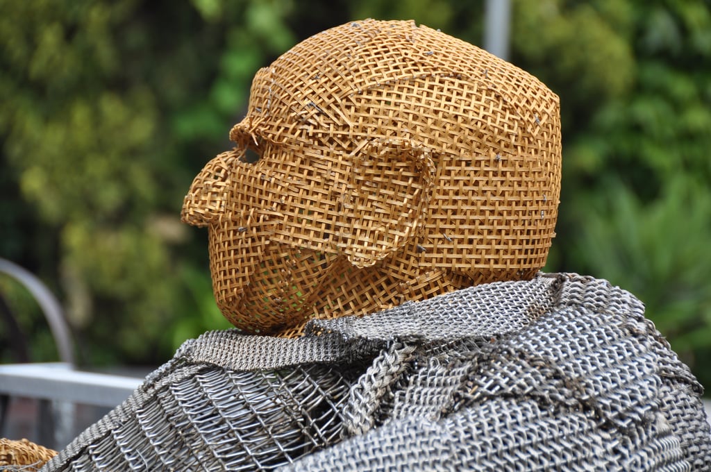Le résultat en est la sculpture « Oupa Carlos », où l’œil du spectateur traverse les niveaux de transparence de la maille et pénètre dans l’œuvre d’art, le spectateur devenant ainsi partie intégrante de la sculpture. En outre, les différentes mailles métalliques ont permis à l’architecte et sculpteure de créer des textures, couleurs et motifs différents. Il émane une poésie particulière d’une sculpture grandeur nature d’un homme, réalisée à partir de restes de maille métallique, un matériau qui survivra aux humains grâce à sa robustesse.