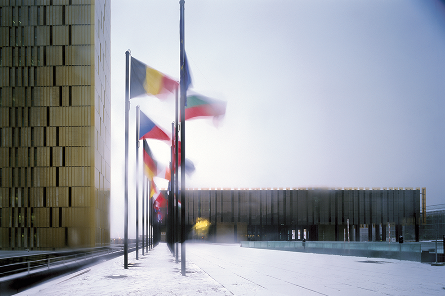 Une maille métallique embellit la Cour de justice Européenne à Luxembourg.