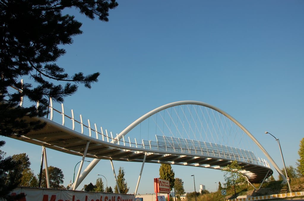 La conception, due à la plume des architectes de Busby Perkins + Will, se caractérise par son arc marqué, qui s’étend diagonalement au-dessus de la passerelle et est relié par des câbles en acier inoxydable à la structure porteuse.