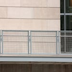 De chaque côté de cette passerelle, des éléments en maille métallique du type Futura 3110, de deux mètres et demi de hauteur, protègent les piétons des rafales de vent. Constituant un garde-corps efficace, l’ensemble de 32 panneaux en maille, légèrement incurvés vers le haut en direction du centre de la passerelle, soulignent l’esthétisme transparent de la construction. Les panneaux sont fixés à l’aide de barres rondes incorporées au tissage et de boulons à œil.